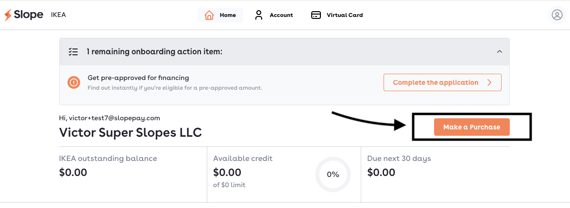 Once you've added items to your IKEA cart and are ready to check out, you'll need to go to your Slope Buyer Portal and select "Make a purchase."