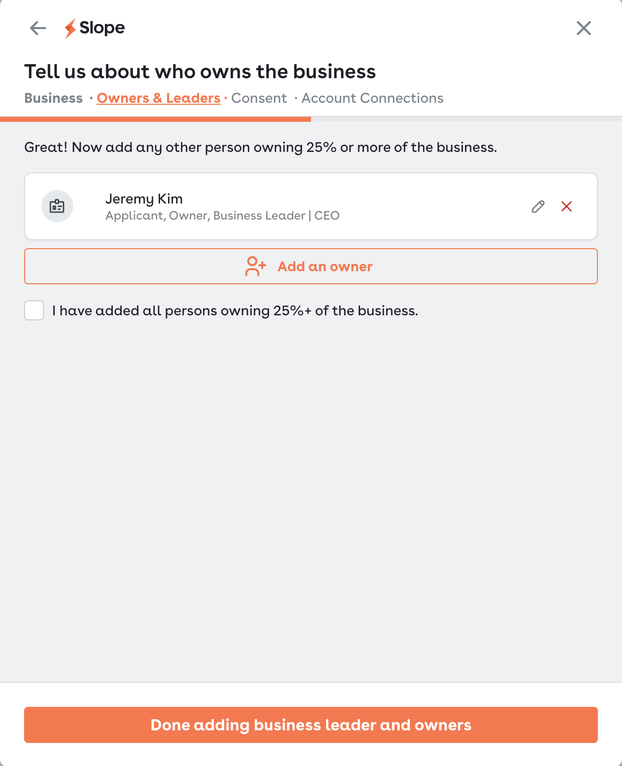 Then, you can also add any other people who own 25% or more of the business.