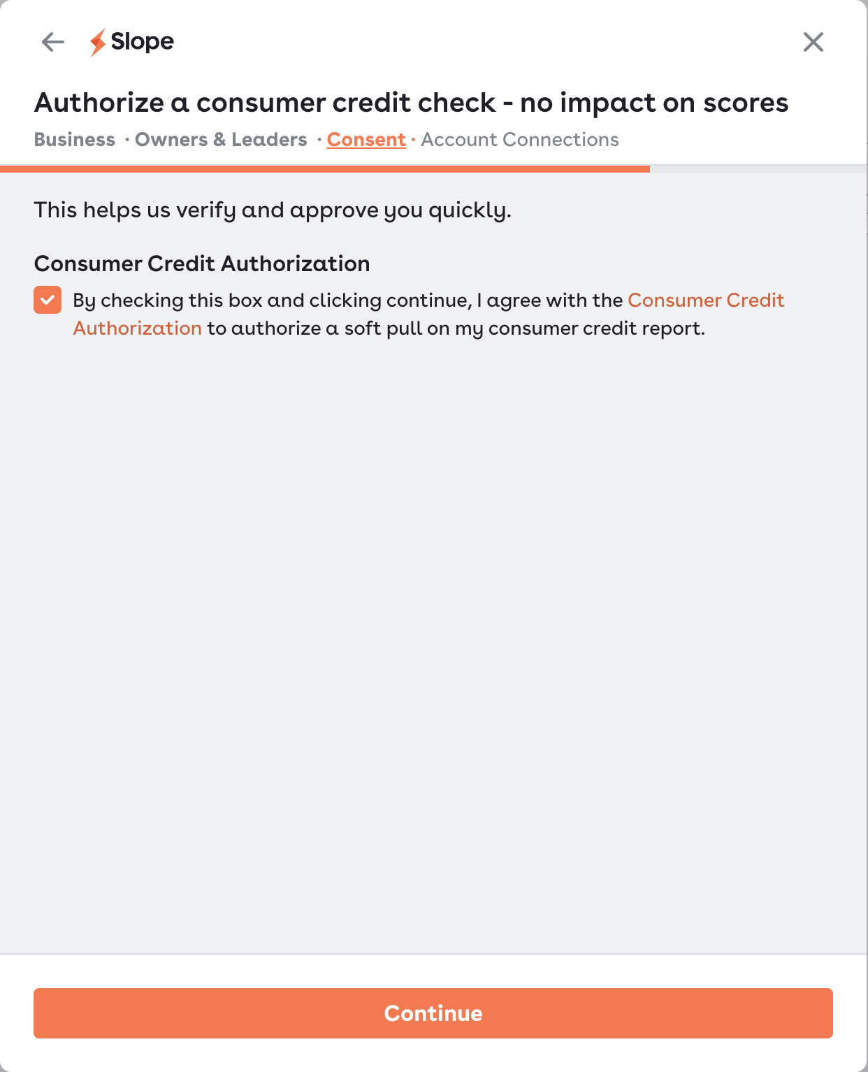 Authorization from one such owner or leader for a consumer credit soft pull - this will not impact credit scores