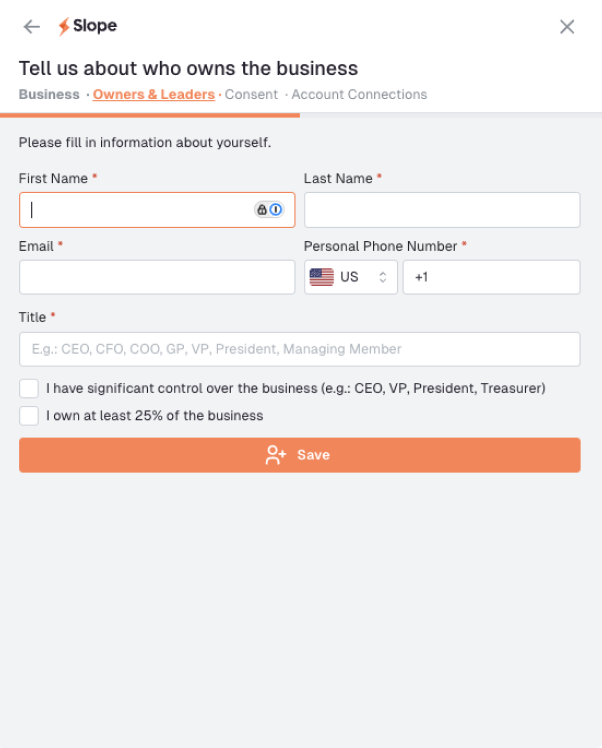 Select an owner or leader that you'd like to authorize a soft pull on their consumer credit. This doesn't impact the individual's personal credit score. For best approval odds, choose someone with a strong personal score.